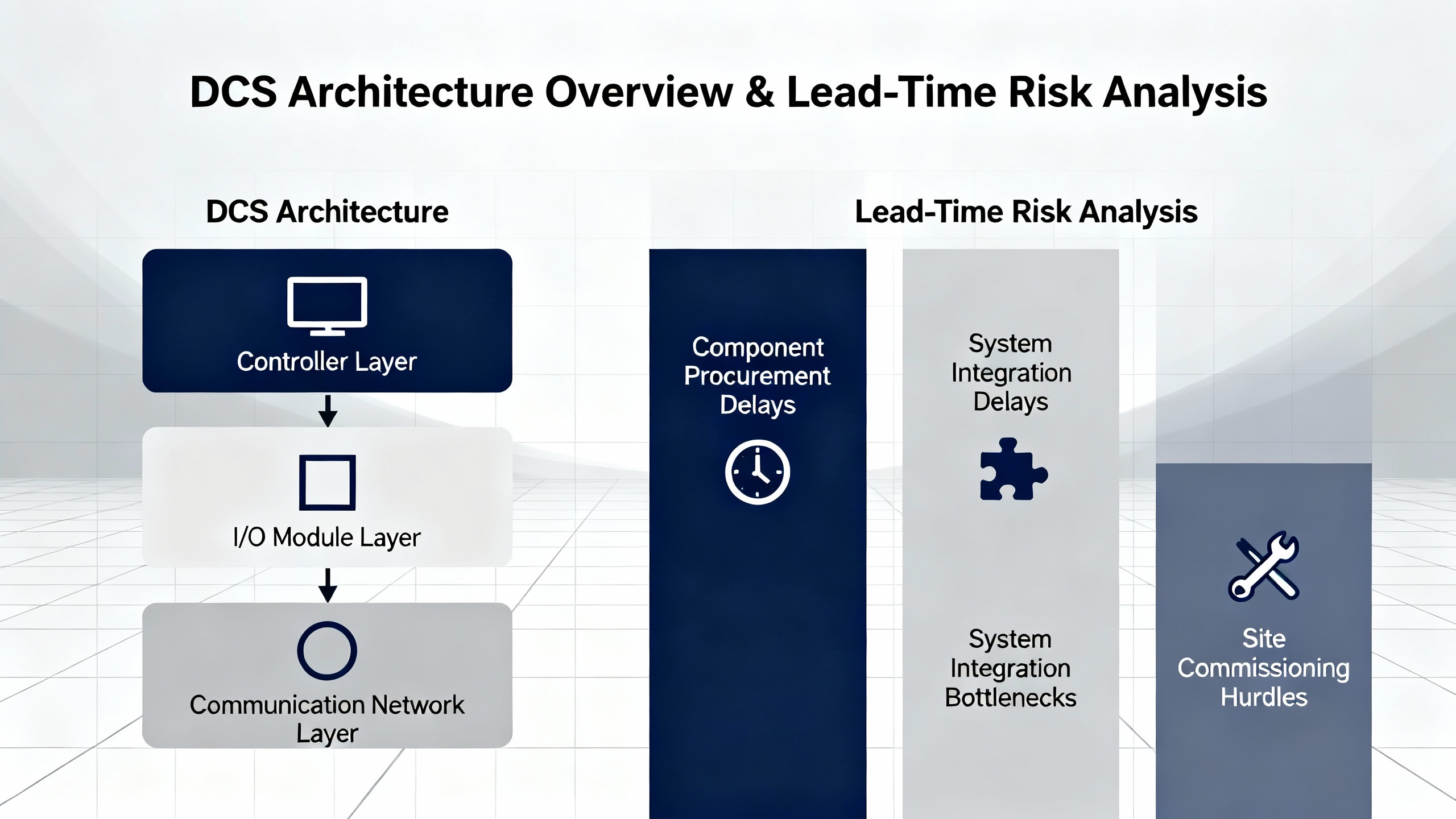 The Vizient data on generator and air handling unit lead times illustrates how quickly power鈥憆elated equipment can become the bottleneck. In a combined power and automation project, you might see medium鈥憊oltage switchgear and generators ordered at the same time as DCS cabinets. If the control panels arrive months before the switchgear, your operator stations, controllers, and I/O sit idle, tying up capital while contributing nothing to schedule progress. If the situation is reversed and switchgear and UPS systems arrive before the DCS hardware that controls them, you cannot perform meaningful functional testing.