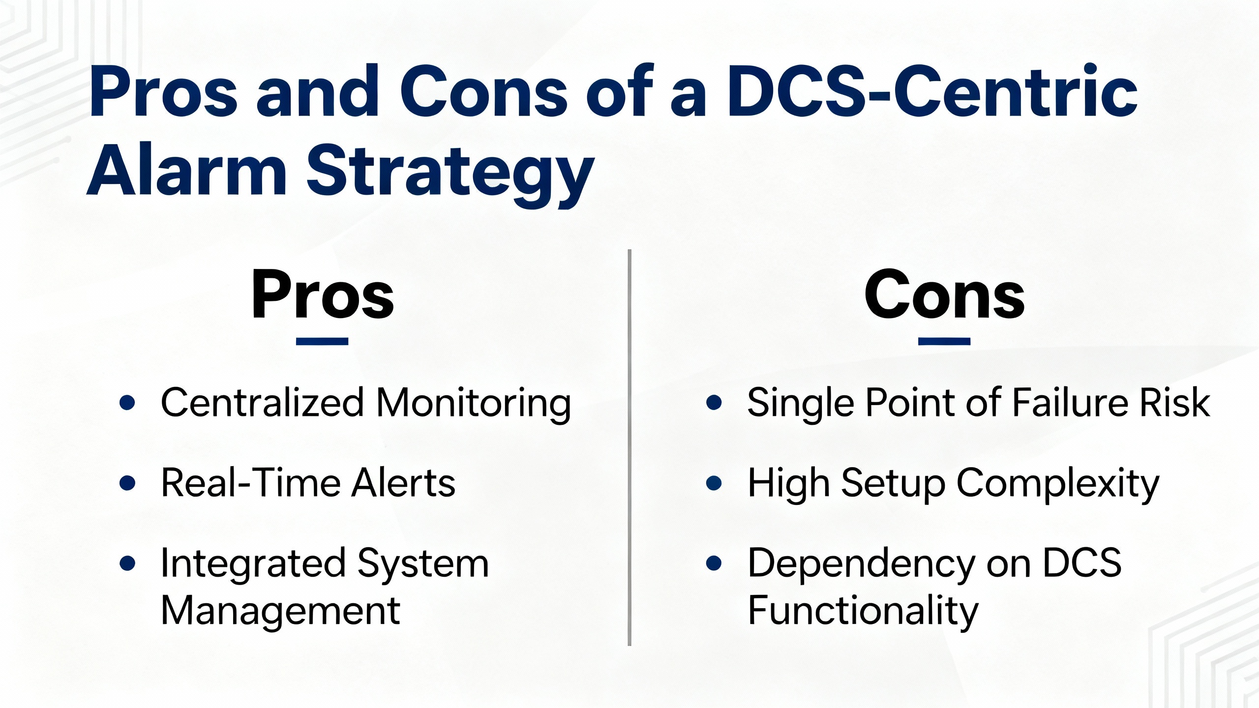 Centralizing alarms in the DCS brings a single source of truth to operators and reduces cognitive load, especially during off-hours callouts. The obvious advantages are unified visibility, consistent workflows, and the ability to correlate across assets and time. Features like grouped alarm views, response navigation to drawings and manuals, and rich incident reports make it easier to move from symptom to corrective action without context switching. The drawback is that a DCS alarm may compress or remap the device鈥檚 native code, which can hide an important nuance. Teams sometimes rely on a short DCS message without consulting the model-specific device manual, leading to incorrect resets or parameter changes. The remedy is procedural rather than technical. Require a link from every DCS alarm to the device鈥檚 code reference, keep validated parameter backups for each model, and review nuisance alarms periodically so threshold and sensor problems get fixed rather than ignored.