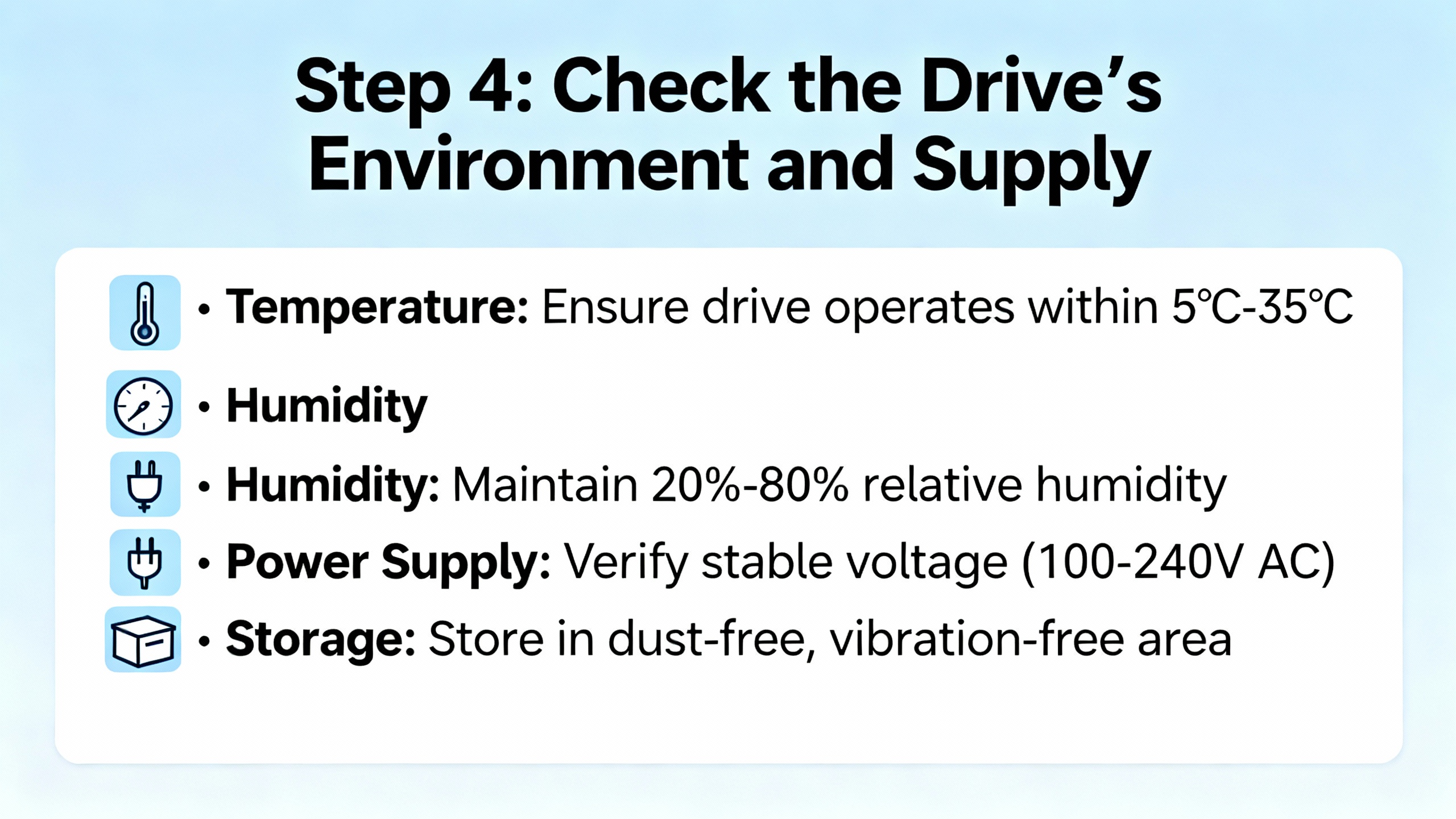 Even perfectly tuned motor protection will not behave well if the drive is being cooked in a hot, dirty enclosure or starved by a weak power supply. Several of the research sources highlight how frequently overload trips are symptoms of environmental or supply problems.