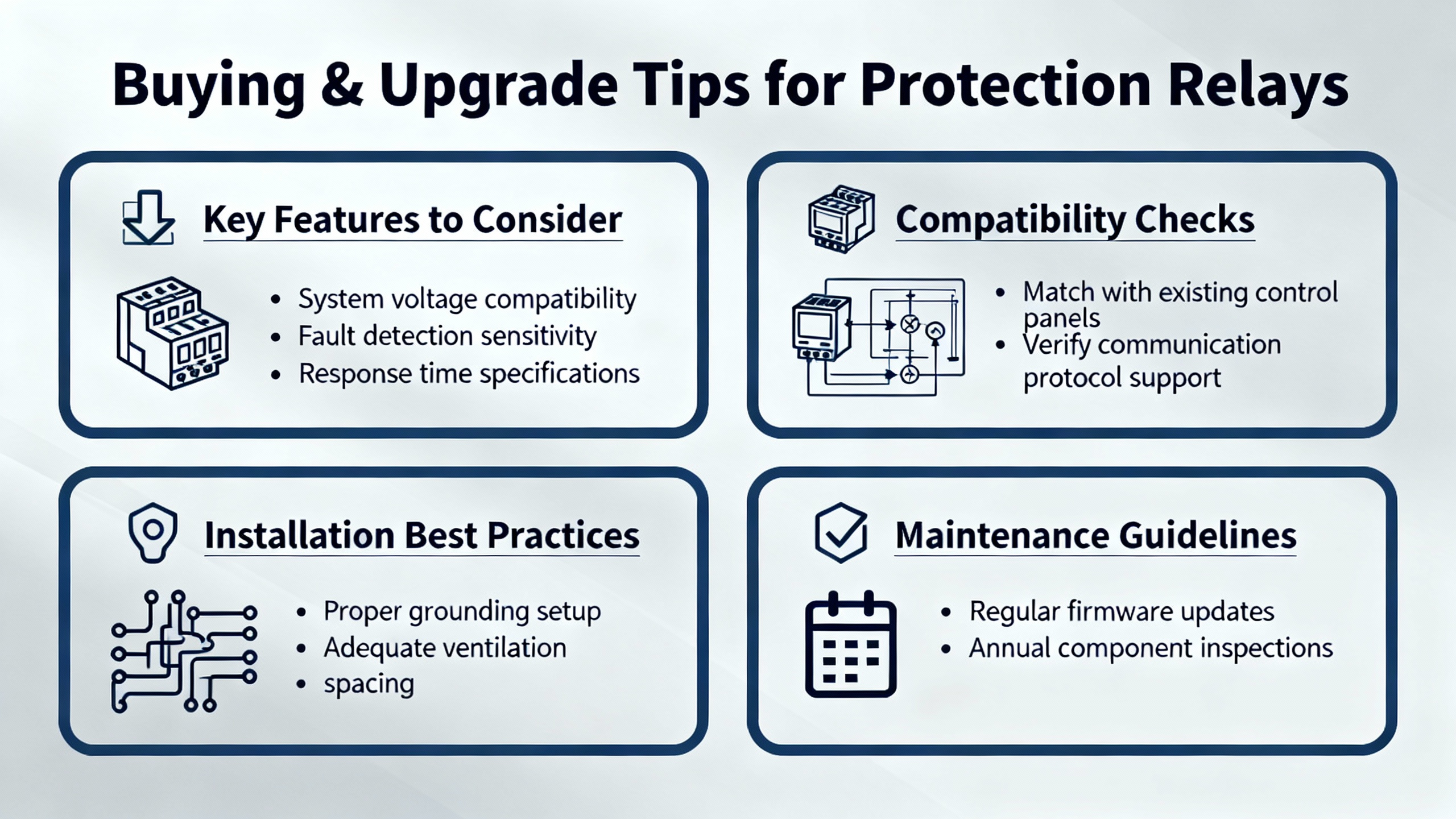 The best troubleshooting is the kind you rarely need to do, and that starts with fit鈥慺or鈥憄urpose selection. Select elements that cover your risks鈥攆eeder overcurrent, transformer differential, breaker failure, and arc鈥慺lash mitigation where personnel exposure exists. Ensure communications match your plant architecture; IEC 61850 brings speed and flexibility in substations, while DNP3 or Modbus may align with existing SCADA. Verify event memory depth and disturbance recording support; post鈥慹vent visibility is a lifesaver. Confirm self鈥憇upervision features and diagnostics so internal faults are unambiguous. Look for time synchronization options compatible with your facility. Match CT/VT requirements to what is installed, including burden and accuracy at your fault levels. Evaluate cybersecurity features if the relays participate in a networked control system. Finally, weigh vendor support, training availability, and the installed base in your region; those soft factors determine how quickly you can get expert help when it matters.
