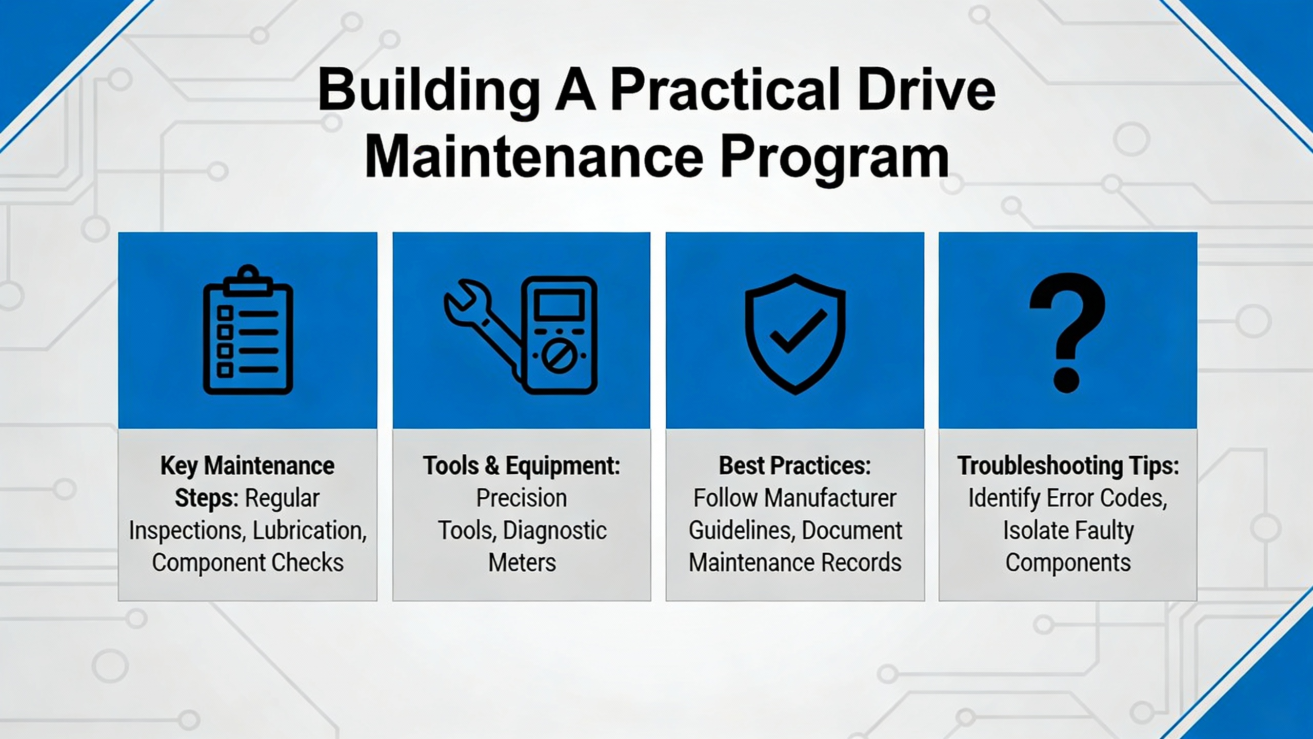 Bringing all of this together into a program means integrating ABB drive care into your wider electrical preventive maintenance and reliability strategy. Facility maintenance experts recommend starting with a structured asset list, ranking assets by criticality and repair or replacement cost, and then designing checklists and schedules accordingly. ABB drives that feed critical UPS鈥憇upported loads, essential process pumps, or key HVAC systems will naturally land in the highest criticality tier.