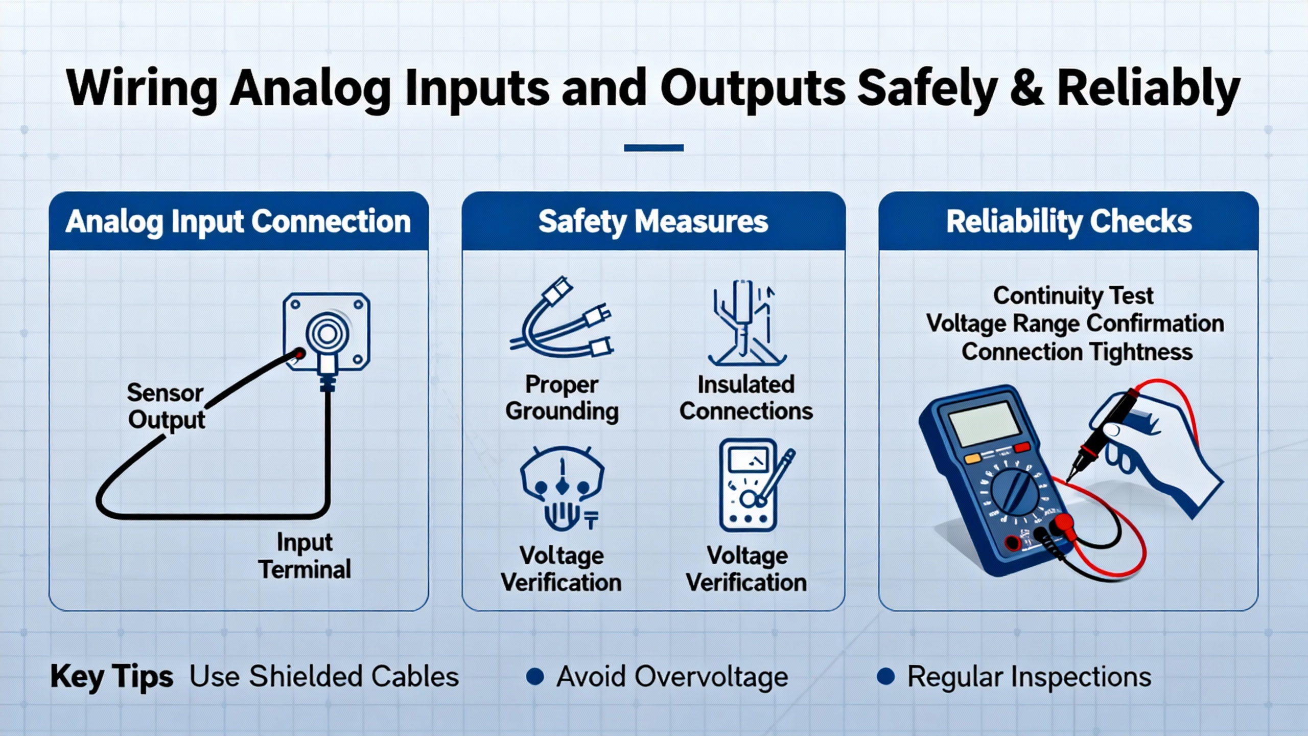 In my own commissioning work, I use a three鈥憇tep discipline on analog channels that echoes this example. I confirm the field device output type from its datasheet and wiring diagram, I confirm that the module channel is configured for the same type and range, and then I use a calibrator to step the input from low, through mid, to high and verify that the raw counts or engineering units match the expected pattern. Any unexplained clipping, half鈥憇cale, or offset tells me that the wiring, configuration, or scaling calculation does not match the design intent.