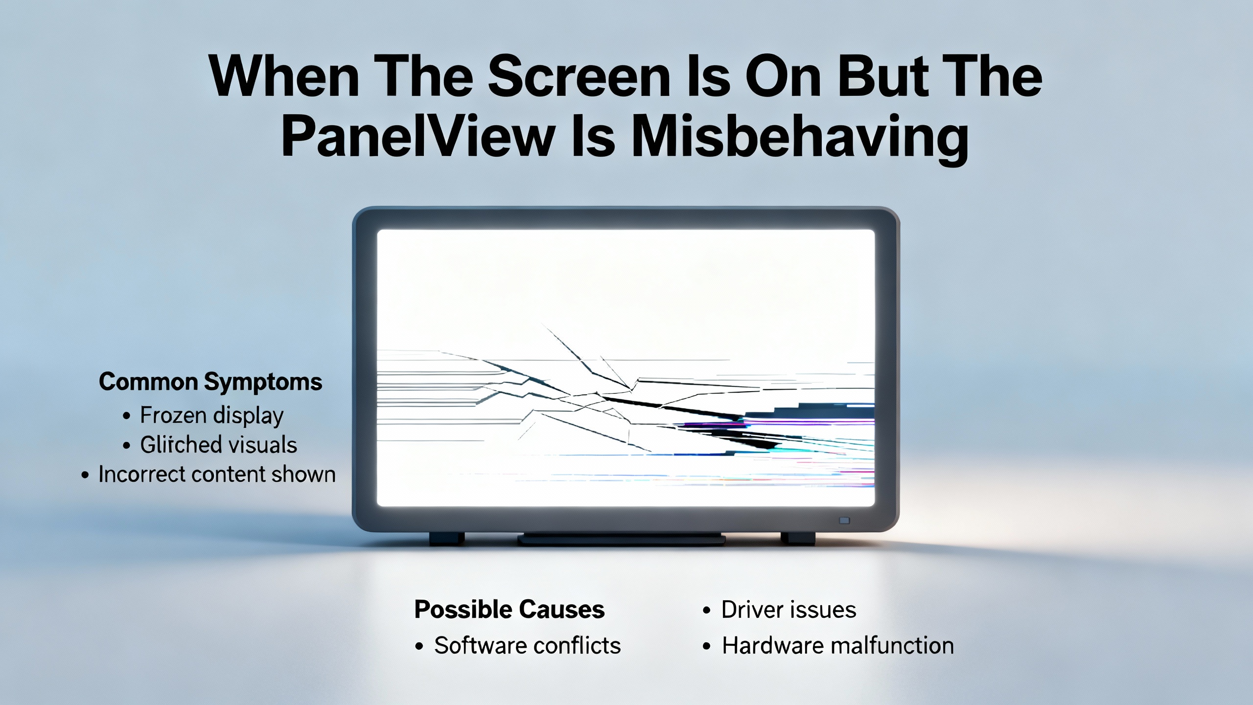 Sometimes the PanelView powers up and displays something, but the picture is garbled, the touch input is erratic, or buttons fail after changing screens. Those symptoms call for a different set of checks.