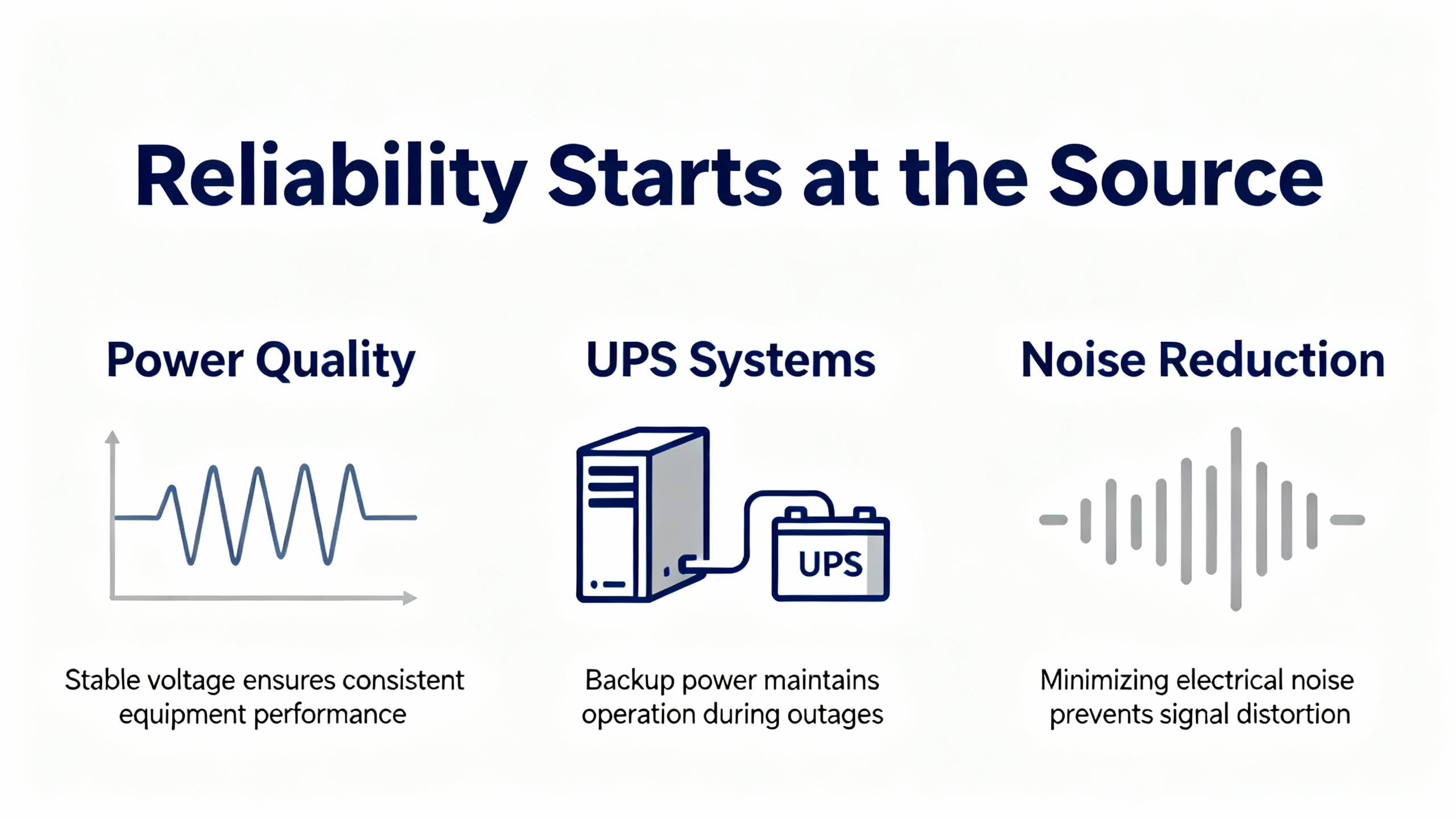 Many PLC problems trace back to power, not programming. Verify PLC supply voltages with a meter at the controller terminals, not just at the panel feed. Look for overheating, dust buildup, and loose terminations, then correct and retorque as needed. Where line conditions are unstable, implement surge protection, voltage stabilization, and line conditioning; these measures reduce memory corruption and nuisance resets. Proper grounding cuts electromagnetic interference, particularly when large motors or drives start nearby. For control system continuity during brief sags or outages, pair the PLC power rail with an appropriately sized UPS; verify battery health on a maintenance schedule and test under load. These power‑centric practices are emphasized by PDFSupply and PLC Department and align directly with a UPS‑and‑inverter reliability mindset.