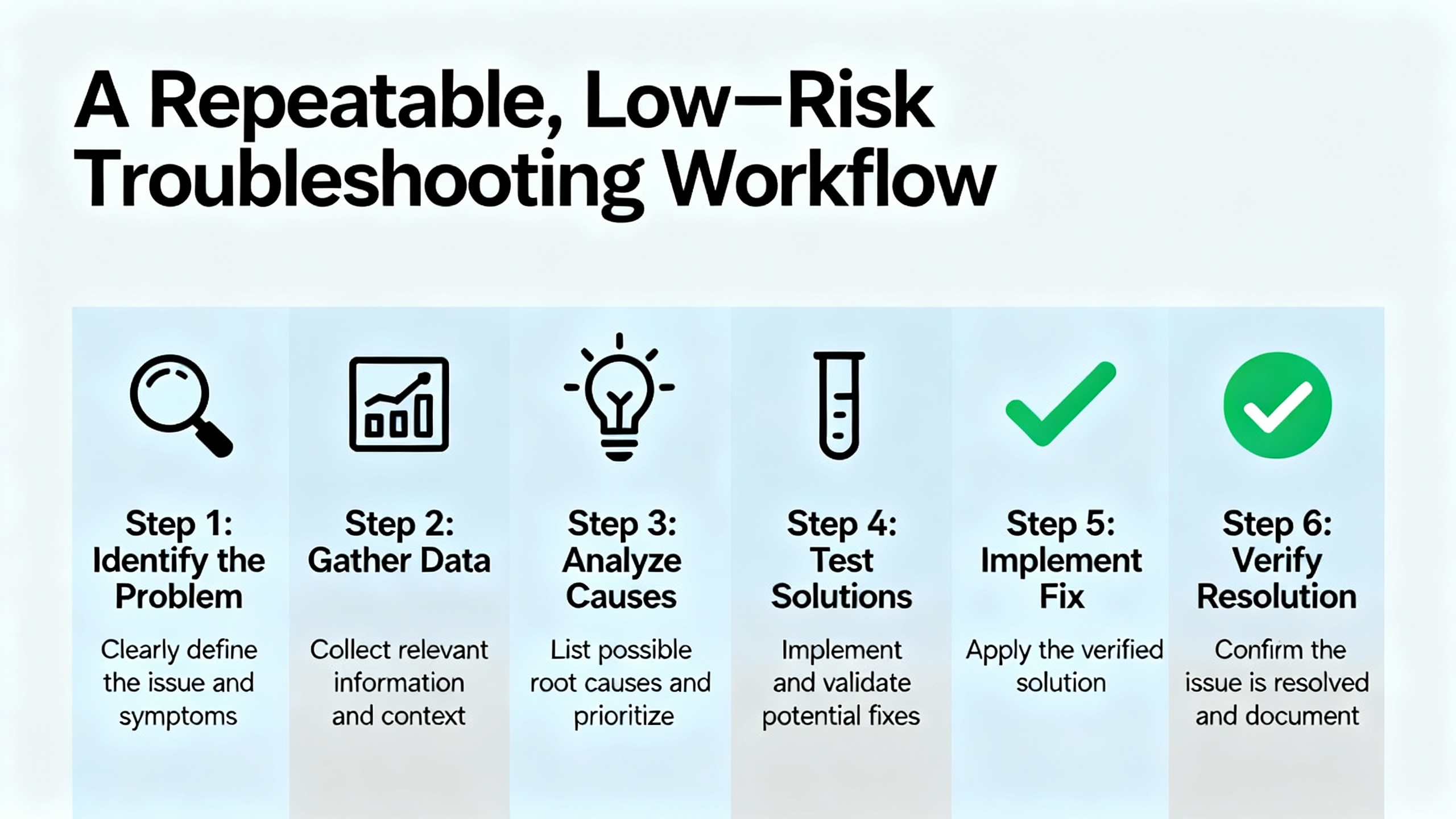 These patterns are deliberately conservative. Acting on them first reduces downtime while minimizing “shot‑in‑the‑dark” edits that can introduce new problems.