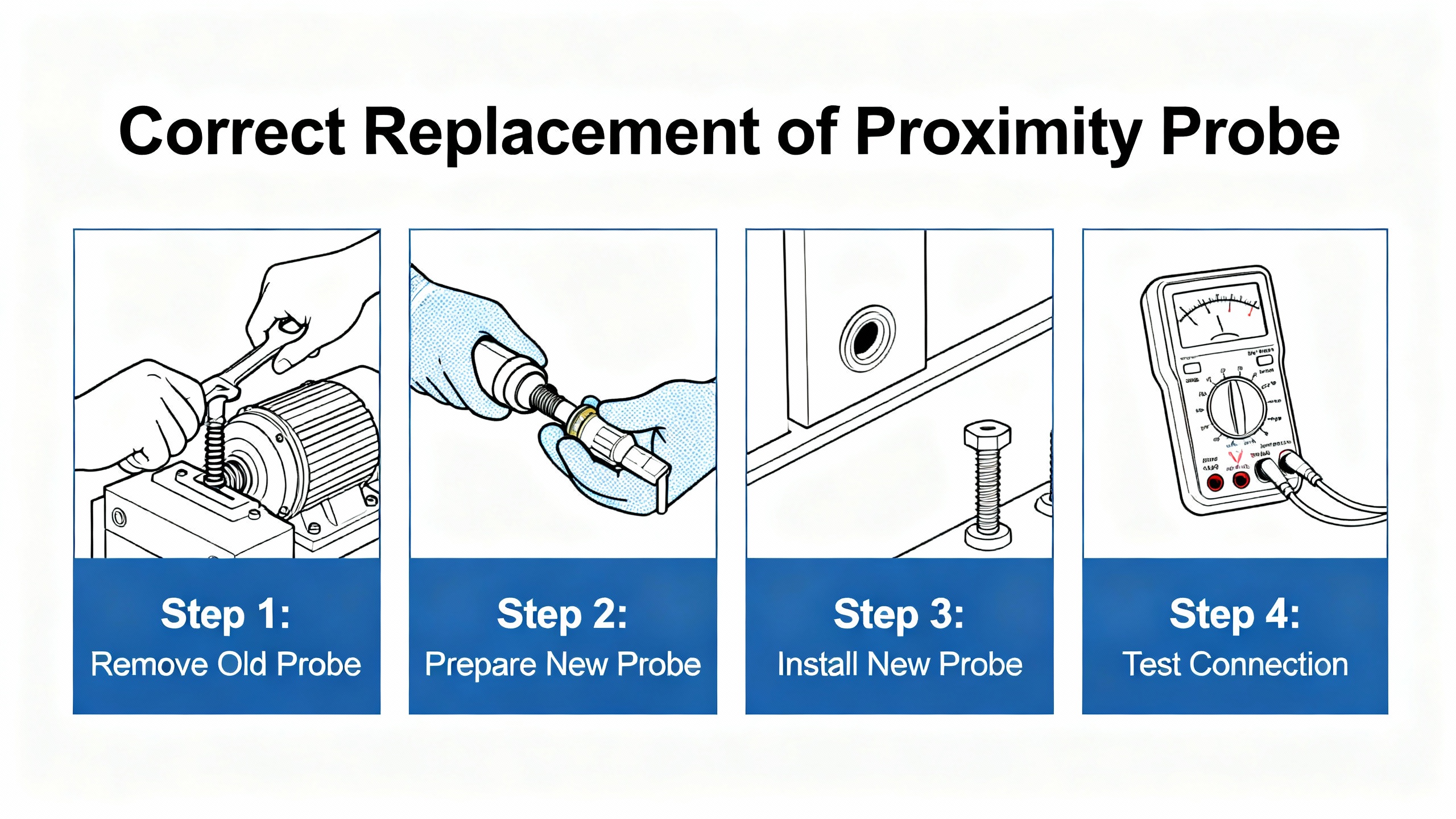 Replacing a proximity probe is not complicated, but doing it casually is where many 鈥渕ystery vibration鈥 problems begin. The steps below align with best practices from Ubest, The Modal Shop, and Amikong, adapted for a power and protection context.