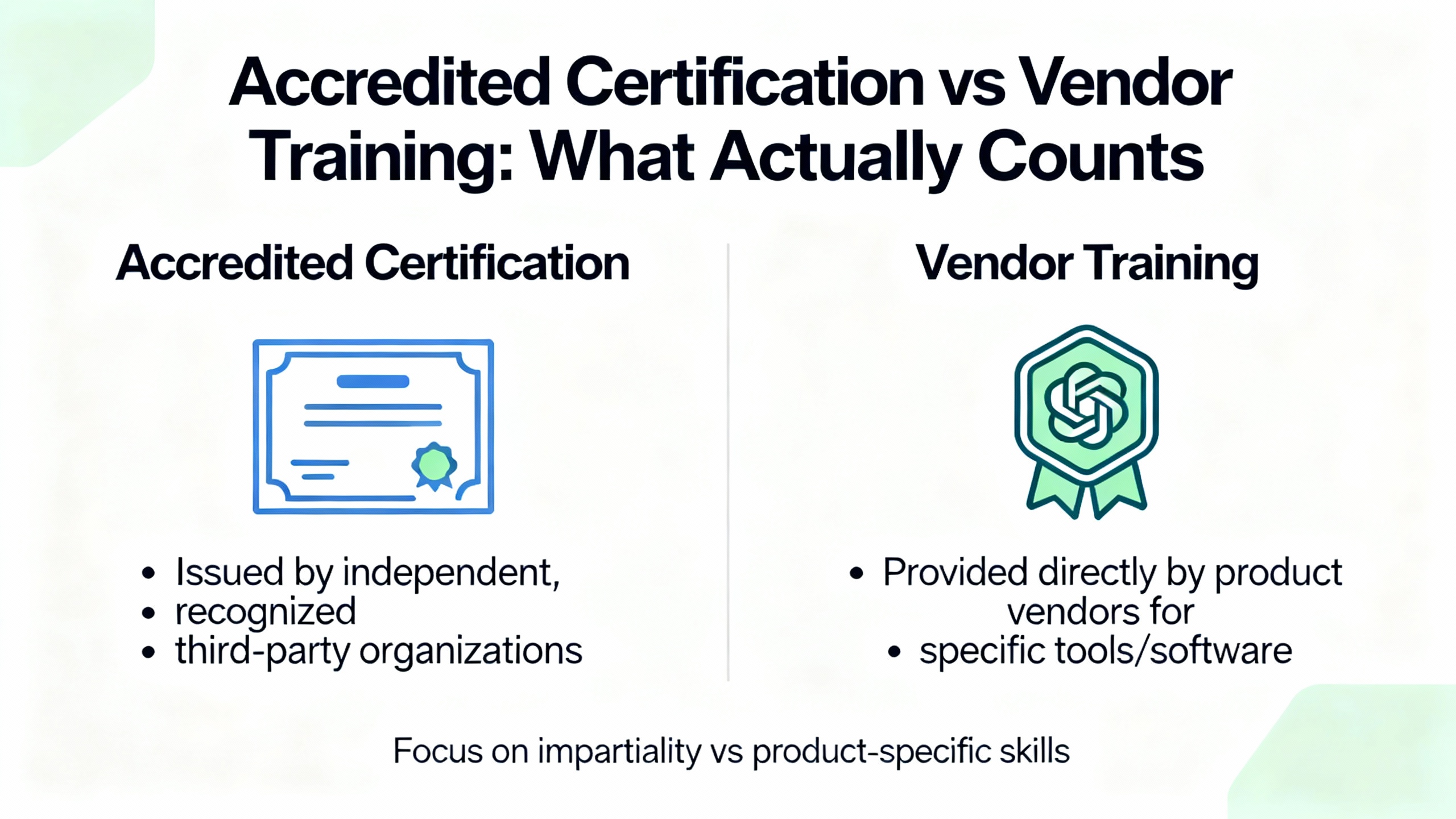Another common pitfall is assuming that a short vendor class or an internal 鈥渃ertificate of completion鈥 carries the same weight as an accredited certification. Vendor classes are useful for understanding specific tools, but they often do not include proctored exams, independent verification of experience, or ongoing recertification requirements. Accredited schemes require verified field work, enforce exam security, and are periodically audited by bodies like ANAB. That added rigor is what gives employers and clients confidence in the credential.