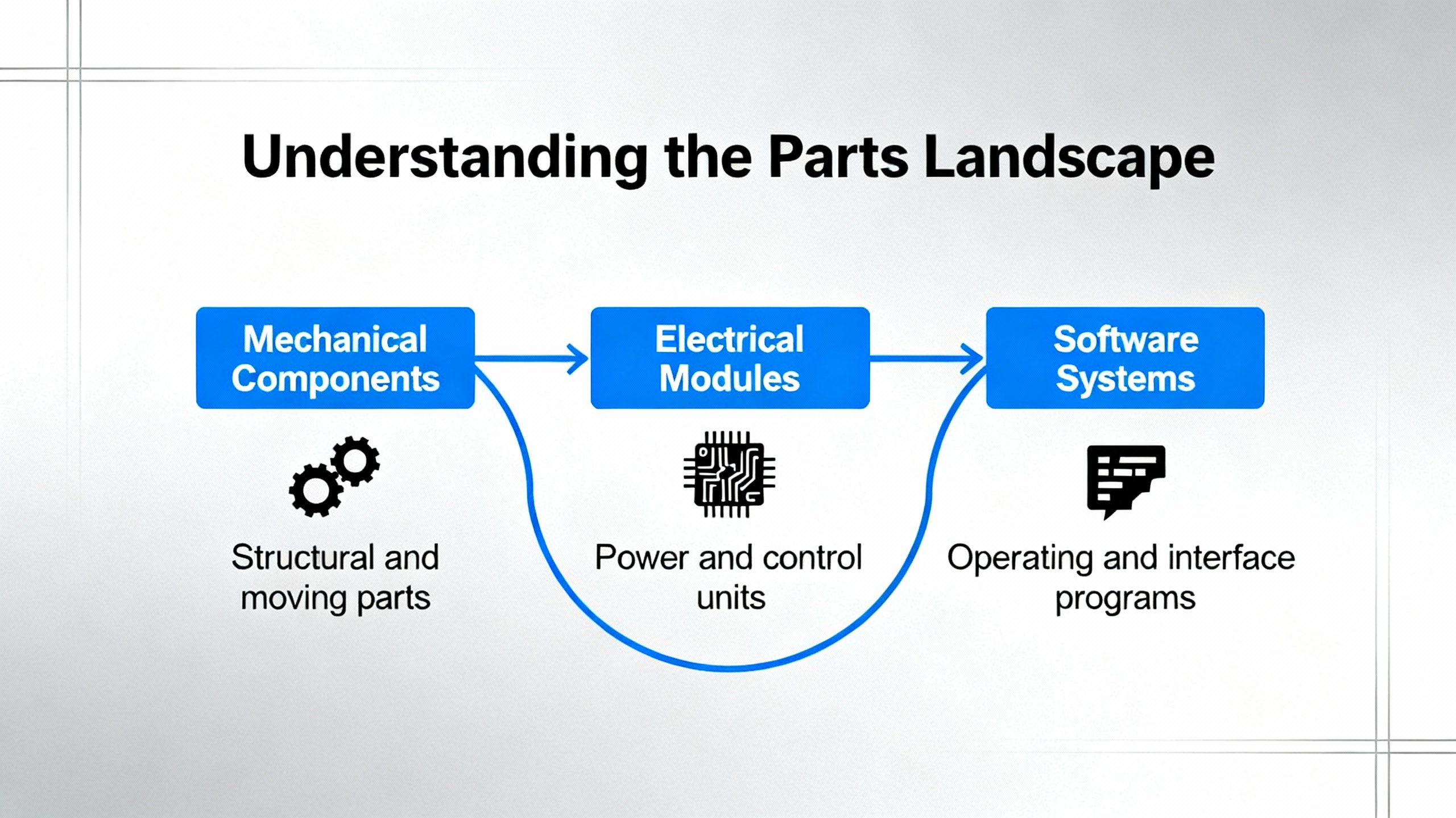 Operator interfaces, teach pendants, and robot wrist assemblies round out the ecosystem. Lemhunter notes that teach pendants and operator panels are routine replacement items because they are handled constantly, while robot wrist assemblies and cables see repetitive motion and often live in aggressive environments. These components are where human factors, cable management, and mechanical robustness intersect with control electronics and power wiring. An experienced parts supplier can help you choose variants and accessories that extend service life instead of simply duplicating the failure modes you already have.
