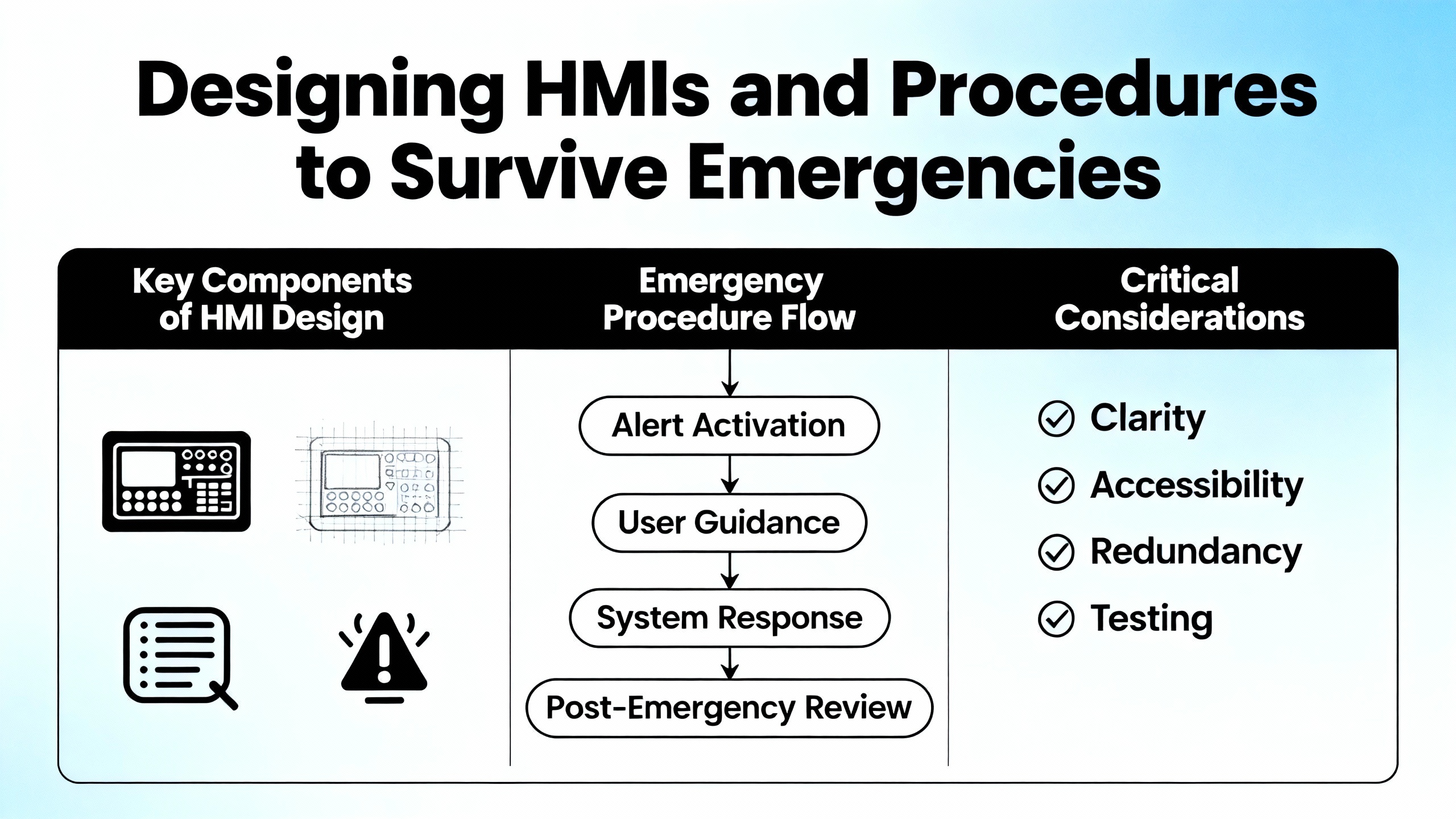 Emergency readiness is not only about hardware. The way your HMI is designed and governed determines how operators cope in abnormal conditions and how easily you can swap panels without confusion.