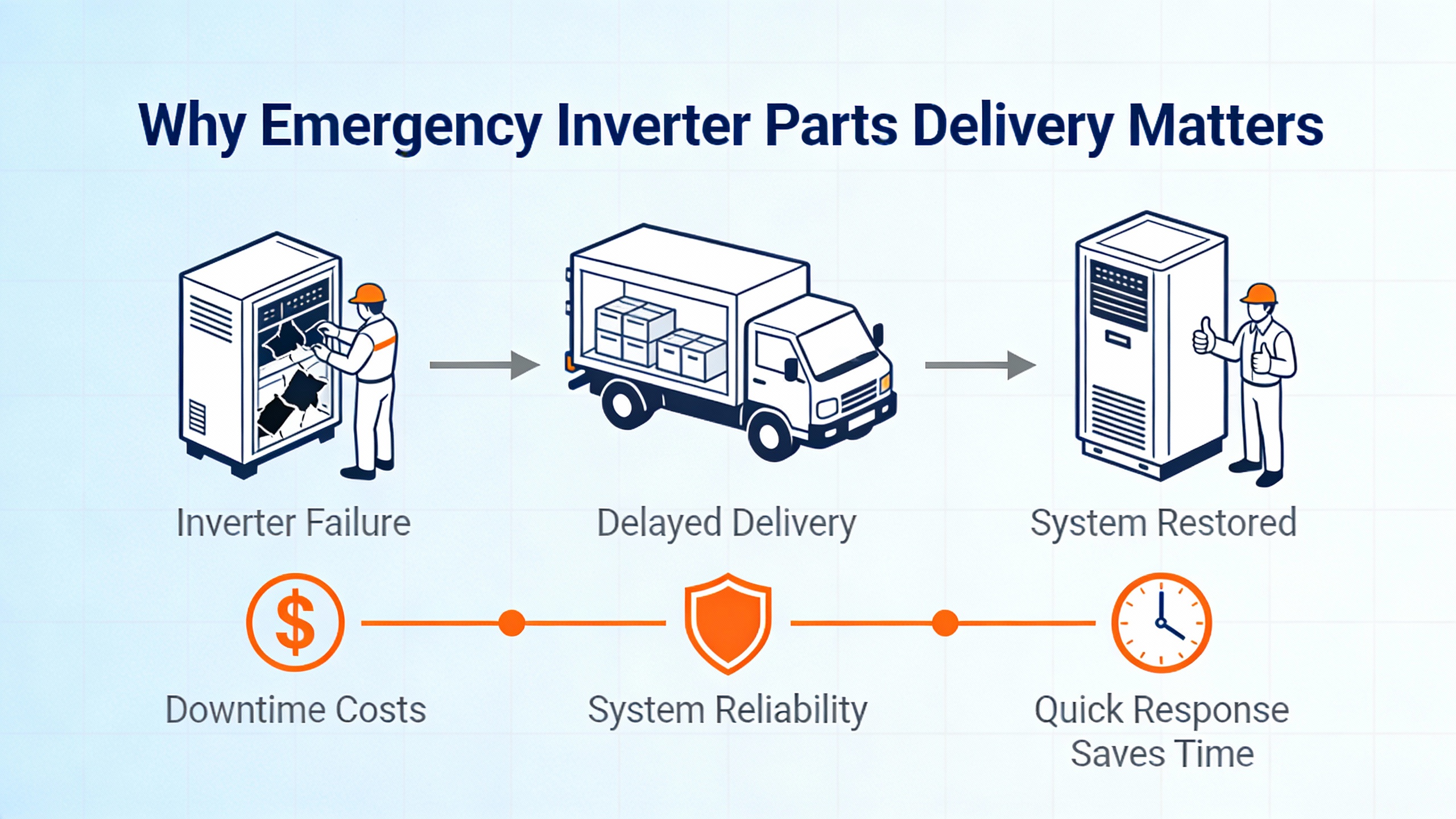 The practical implication is straightforward. Emergency inverter parts delivery has to be tightly coupled with an accurate diagnosis. The aim is not merely having 鈥渁 spare drive somewhere,鈥 but having the correct high-yield components and partners ready once you know what failed and why.