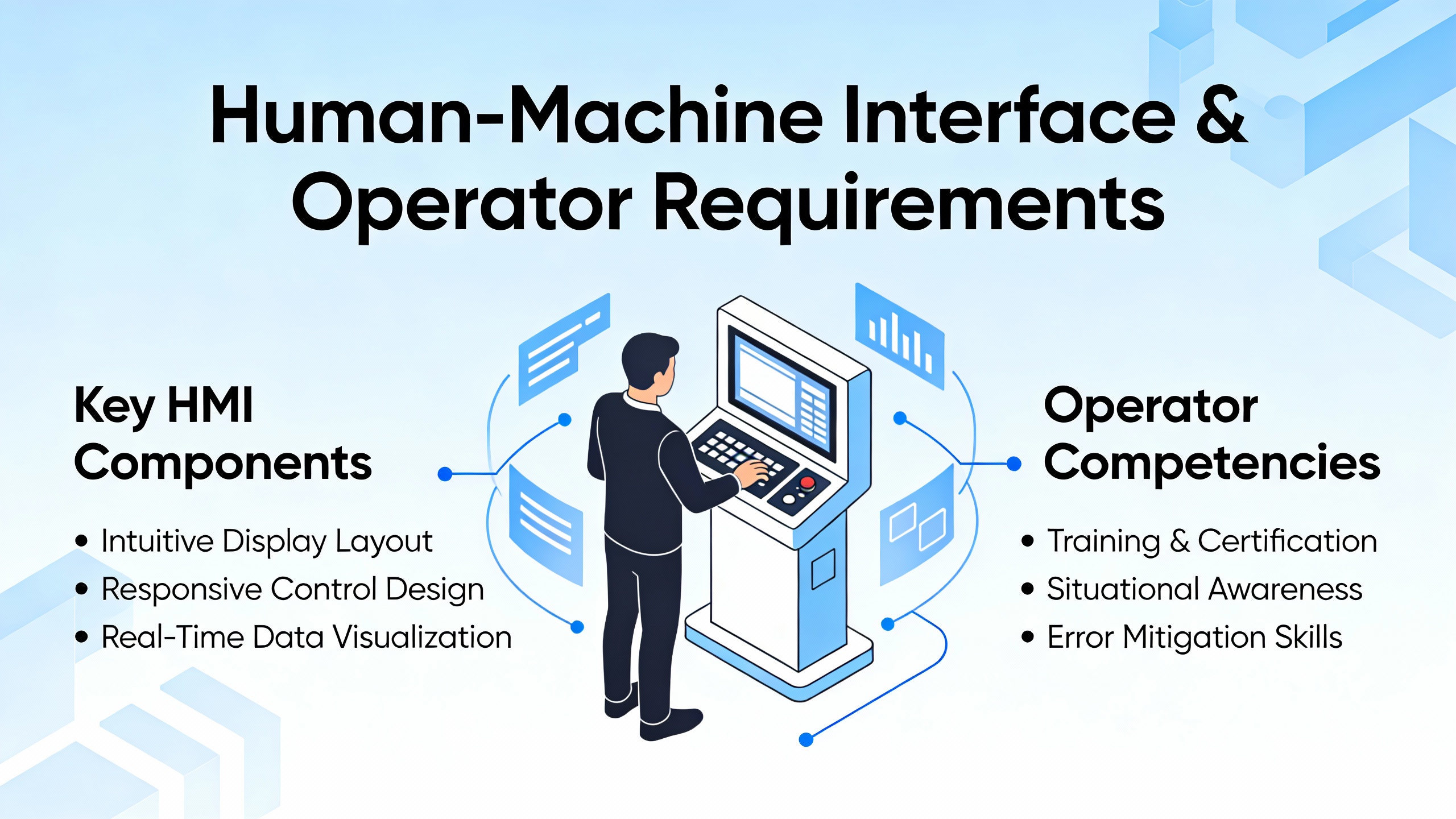Even the best control logic can be undermined by poor human-machine interfaces. Human-factors studies of gas turbine control consoles describe a microprocessor-based system with a CRT or modern HMI client that simultaneously serves as operator interface, maintenance interface, and configuration environment. To bridge the gap between traditional relay-based controls and digital systems, sequencing logic is often presented as ladder diagrams familiar to plant electricians, not only as abstract Boolean code.