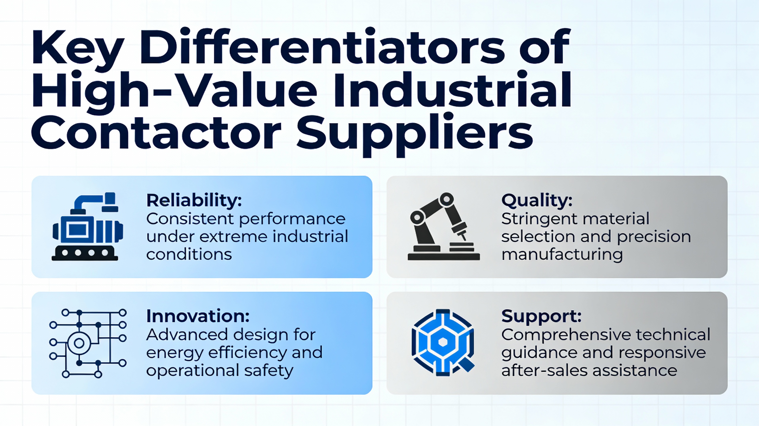Balaji and KINO both stress technician training, and Balaji links that explicitly to authorized suppliers who can deliver factory‑aligned guidance. Contactor Depot and Proax supplement this with free or bundled technical support. That ecosystem—maintainable products, correct application, and support when things go wrong—is what separates a reliability‑focused contactor supplier from a simple catalog house.