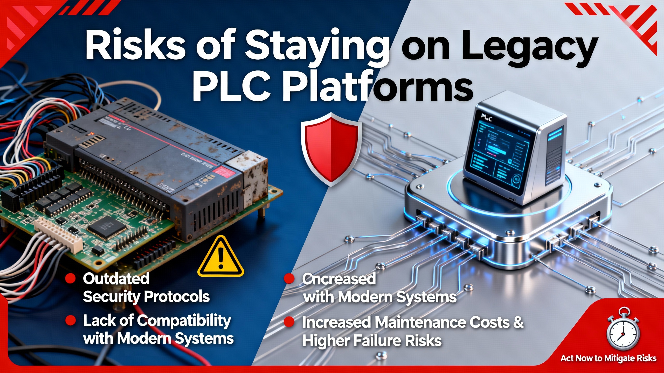Several sources point to additional risks. Legacy hardware and software do not receive cybersecurity patches and often run on outdated operating systems. That makes them vulnerable in connected environments, exactly where many plants are heading. Balaji Switchgears notes that spare parts and knowledgeable engineers are both becoming scarce, which turns every failure into an emergency redesign rather than a controlled maintenance event. Schneider Electric鈥檚 PLC migration guidance shows that when plants wait too long, they often jump directly from 鈥渟teady state鈥 to 鈥渃risis upgrade鈥 after a single catastrophic failure.