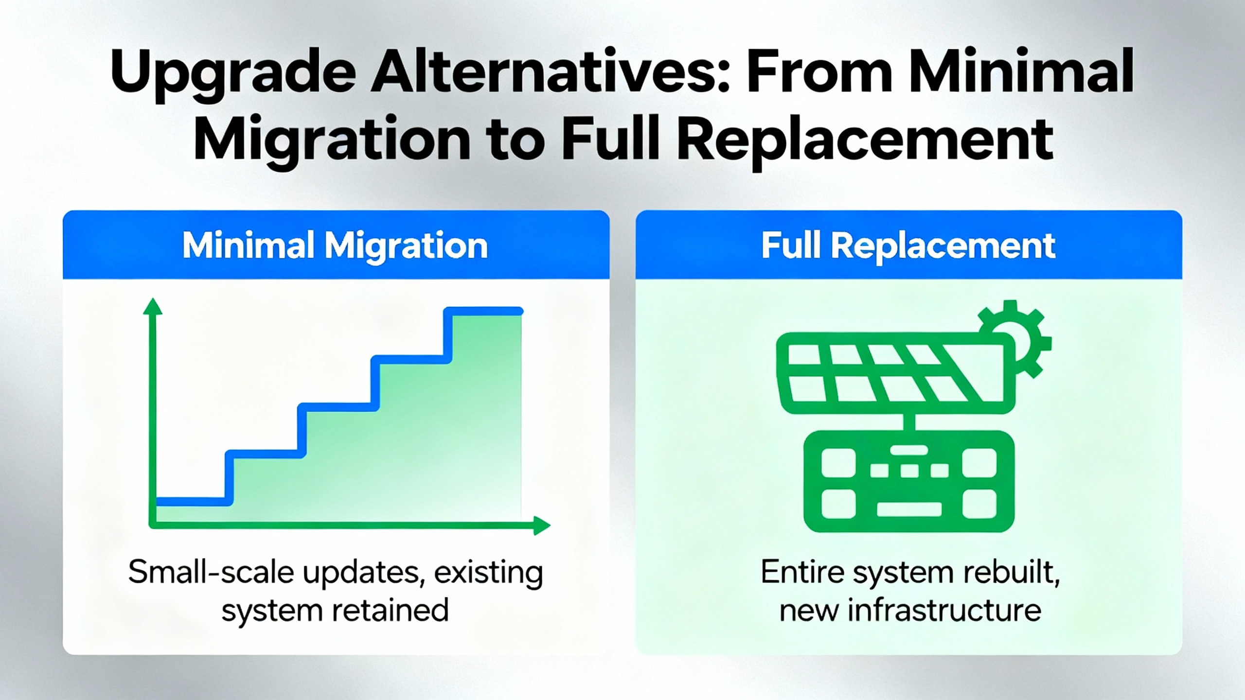 | Upgrade path | What changes | Typical downtime impact | Future flexibility | Typical use case |