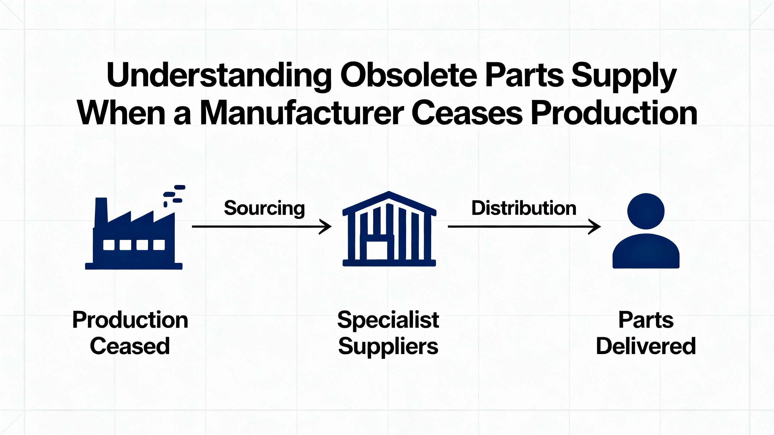 Industrial Automation Co, Hasuka Automation, and PLC Automation Group all describe the role of specialist obsolete automation parts suppliers. PLC Automation Group defines them as third-party vendors focused on discontinued or hard-to-find components, originally made by OEMs, that they source, test, certify, and supply. Hasuka adds that these parts are often ten to twenty years old but still central to production lines, and that OEMs may have long since dropped support.