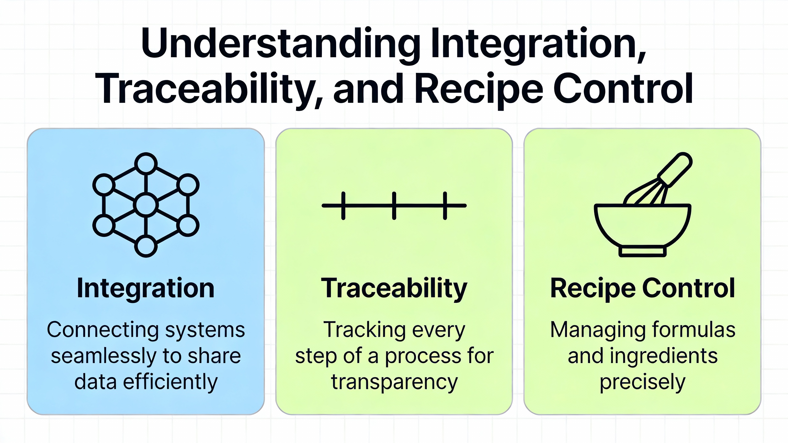 Q: Where should recipe management live: in the PLC, SCADA, or MES? There is no single answer, but the trend in real projects is toward tightly integrating these layers. Actemium describes a successful case where recipe management was consolidated inside the PLC, with operators able to make real-time adjustments through HMIs. That approach simplifies deterministic control and validation. EZSoft Inc, however, highlights the advantages of integrating PLCs with MES and robust databases for traceability, scheduling, and reporting. A practical approach is to let the PLC enforce real-time recipe execution and critical limits while SCADA and MES manage higher-level recipe libraries, approvals, and historical tracking.