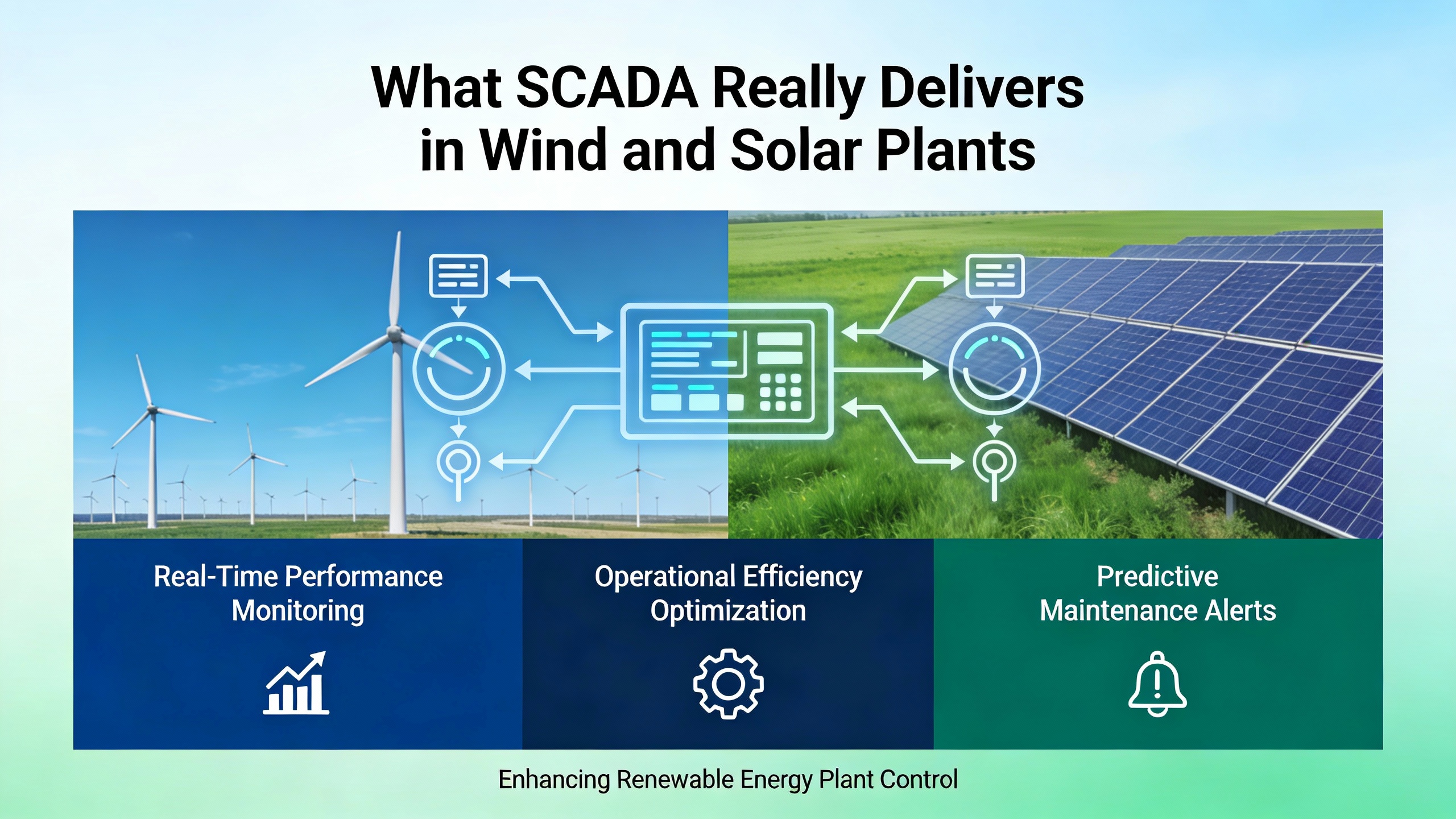 Across case studies from providers such as Power Factors, Inductive Automation, Vertech, Australian Control Engineering, Nor-Cal Controls, and others, the same pattern keeps appearing. Successful renewable operators use SCADA not just as a data viewer, but as a supervisory control layer tightly coupled to plant controllers, energy management, and cybersecurity. This article looks at what that actually means for wind and solar owners, and how to make SCADA a reliability asset instead of another fragile system.