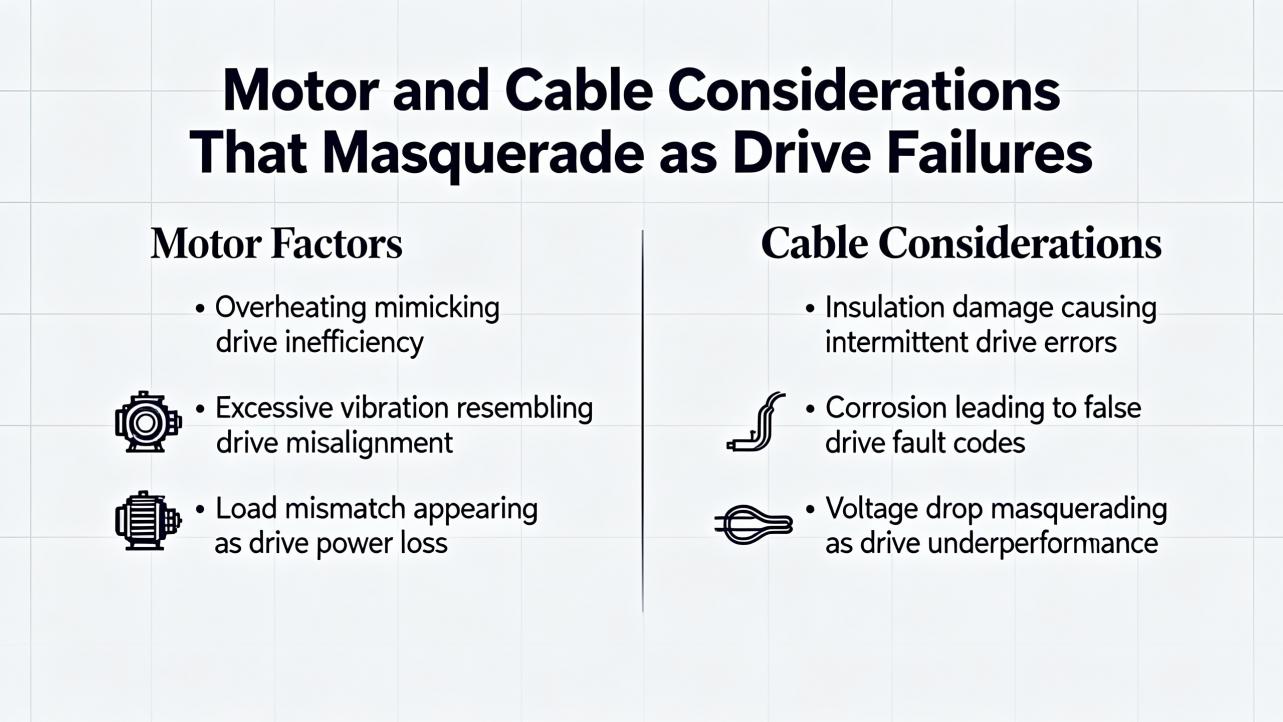 Start with the mechanics and the wiring. Clear any obstructions in pumps, fans, or conveyors and verify that bearings turn freely. Ease the acceleration ramp and confirm that the motor full鈥憀oad amps are programmed correctly. Then isolate the segments to test. With power removed, megger the motor and cable separately and check for low insulation resistance, but never megger the VFD. If the fault persists with the motor disconnected, suspect the drive. If it clears, suspect the motor or cable.
