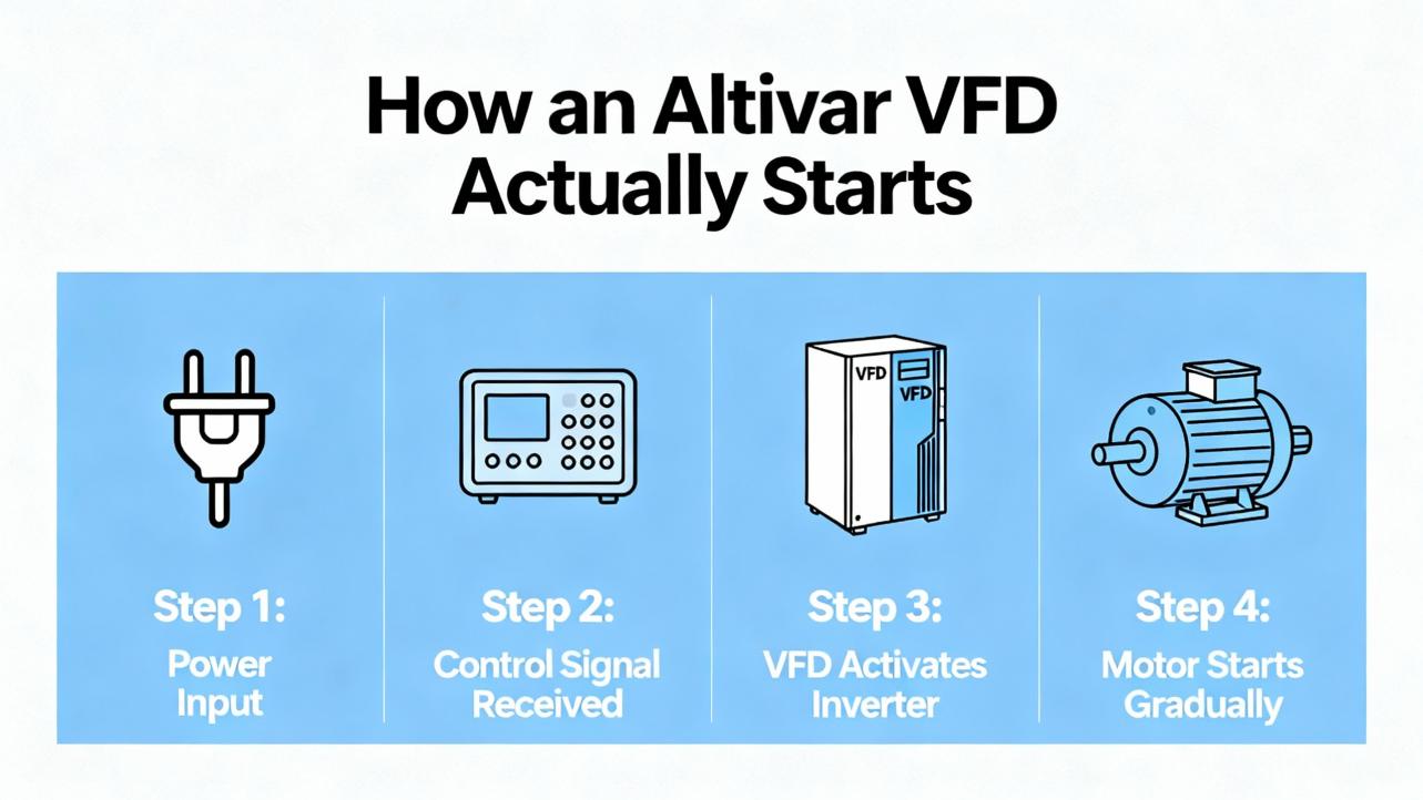 A quick primer helps avoid chasing the wrong thing. A VFD rectifies AC line power to a DC bus on large electrolytic capacitors and then inverts that bus into a variable鈥慺requency, variable鈥憊oltage AC waveform using IGBTs. The control section needs two things to start the motor: a run command and a speed reference. On Altivar, the command can come from digital inputs, a keypad, or a fieldbus; the speed can come from the keypad, an analog input such as 4鈥20 mA, or a network register. Control methods range from basic volts鈥憄er鈥慼ertz to self鈥憇ensing vector and closed鈥憀oop vector with an encoder. The drive鈥檚 thermal model relies on a correct motor full鈥憀oad amp value and appropriate acceleration and deceleration times. Most Altivars are rated for ambient operation up to about 104掳F; above that, derating applies, and enclosure cooling becomes mission critical. The interplay of command source, speed source, and environment explains why 鈥渘othing happens鈥 is often a configuration or conditions issue, not a failed power section.