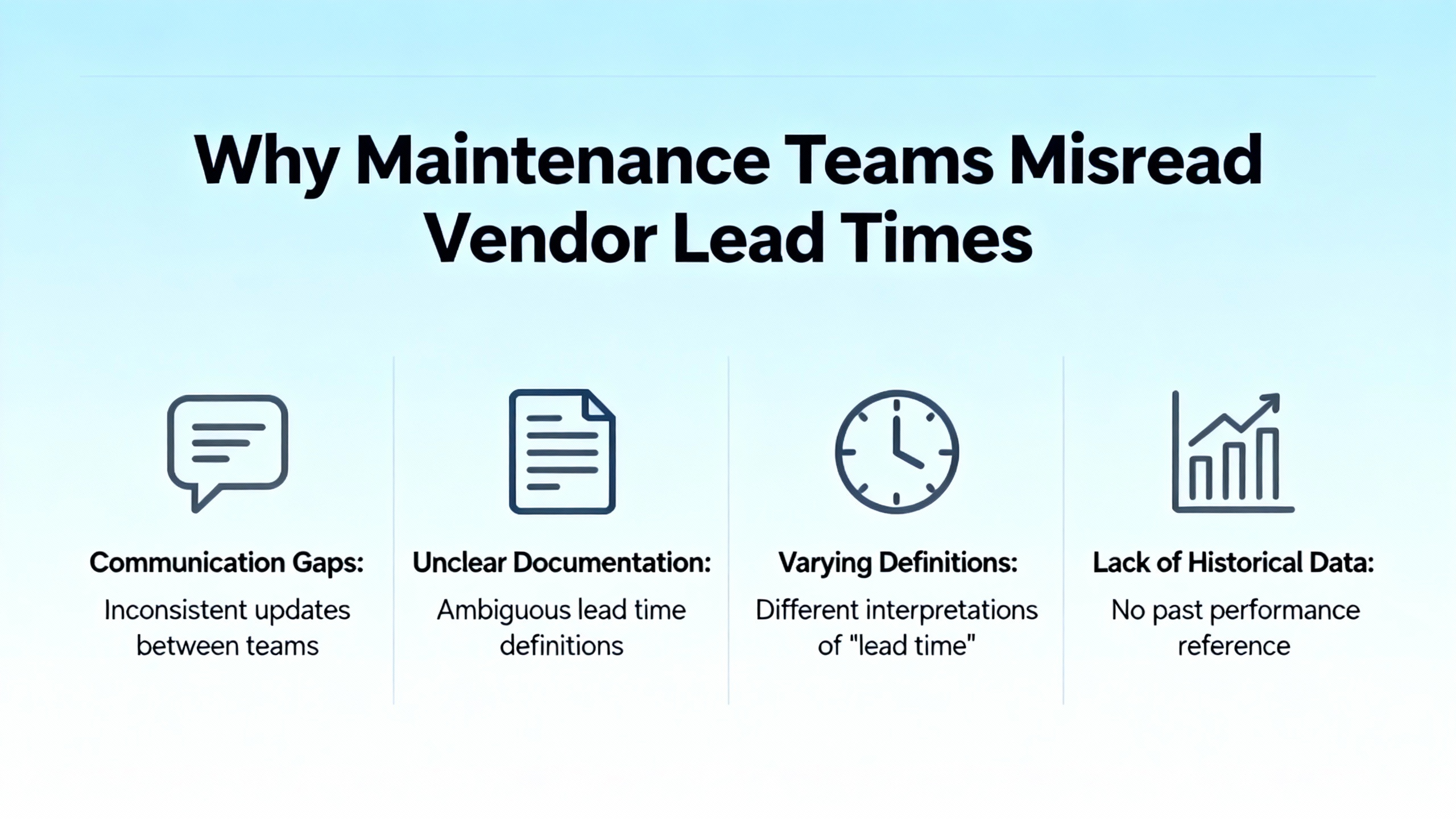 Another complication is inconsistent definitions across suppliers. Mathison points out that one manufacturer might define lead time as 鈥渢ime to ship,鈥 while another describes 鈥渢ime through production鈥 and leaves shipping as an extra, sometimes ten鈥慸ay, leg. When someone tells you a replacement drive control board is 鈥渟ix weeks,鈥 you must know whether that is six weeks until a truck leaves their dock or six weeks until it arrives at your site and clears receiving.