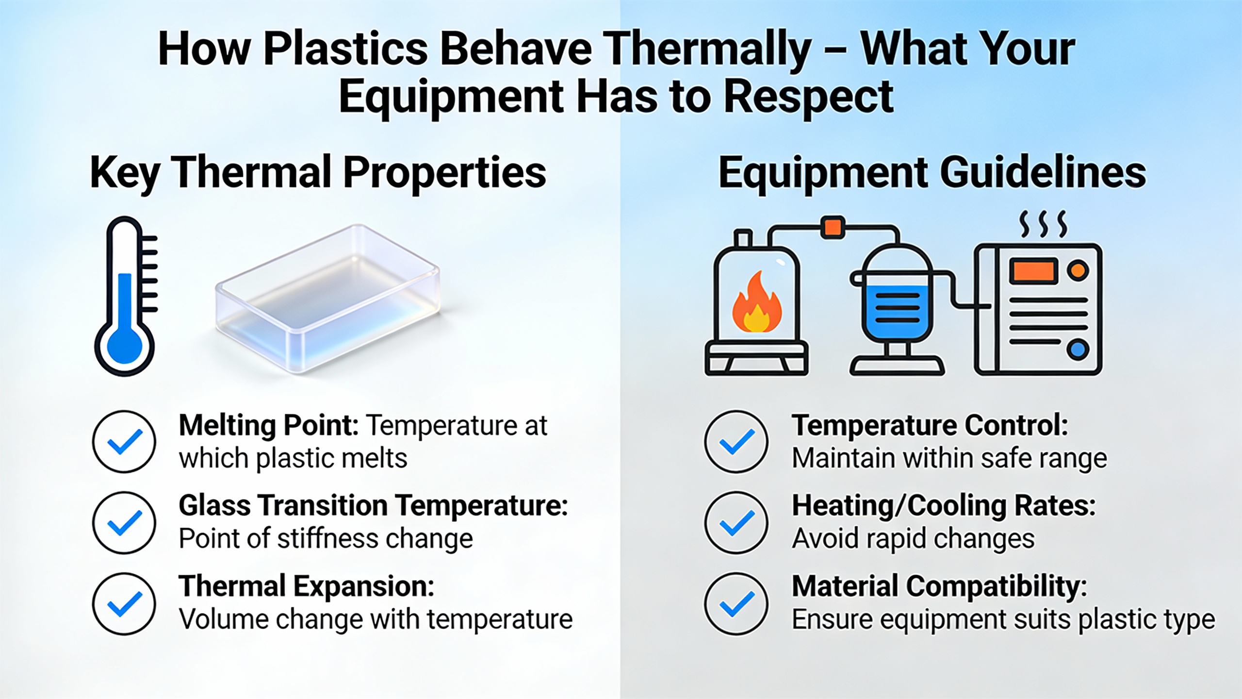 Before talking about chillers and TCUs, it is worth reviewing what the plastic itself does as temperature changes. A widely used plastics materials text from Brigham Young University 鈥 Idaho describes several thermal behaviors that every processor must work around.