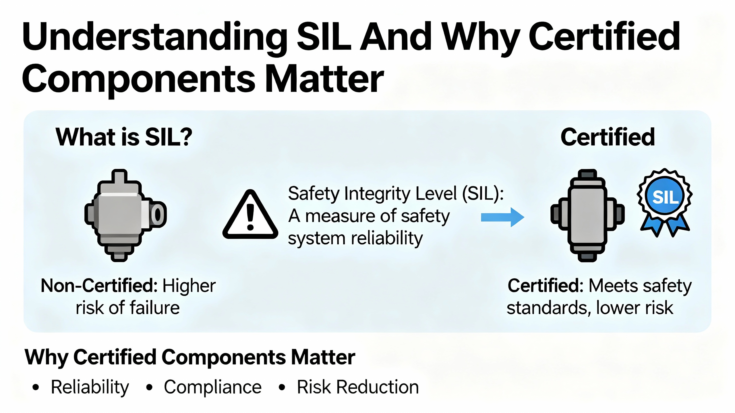 Safety Integrity Level, or SIL, is the quantitative language that connects risk assessment and technical design. Under IEC 61508, SIL levels from SIL 1 to SIL 4 define tolerable failure rates and the required probability of failure on demand for a given safety function. SIL 1 provides the least risk reduction, and SIL 4 provides the highest, usually reserved for extremely hazardous applications.