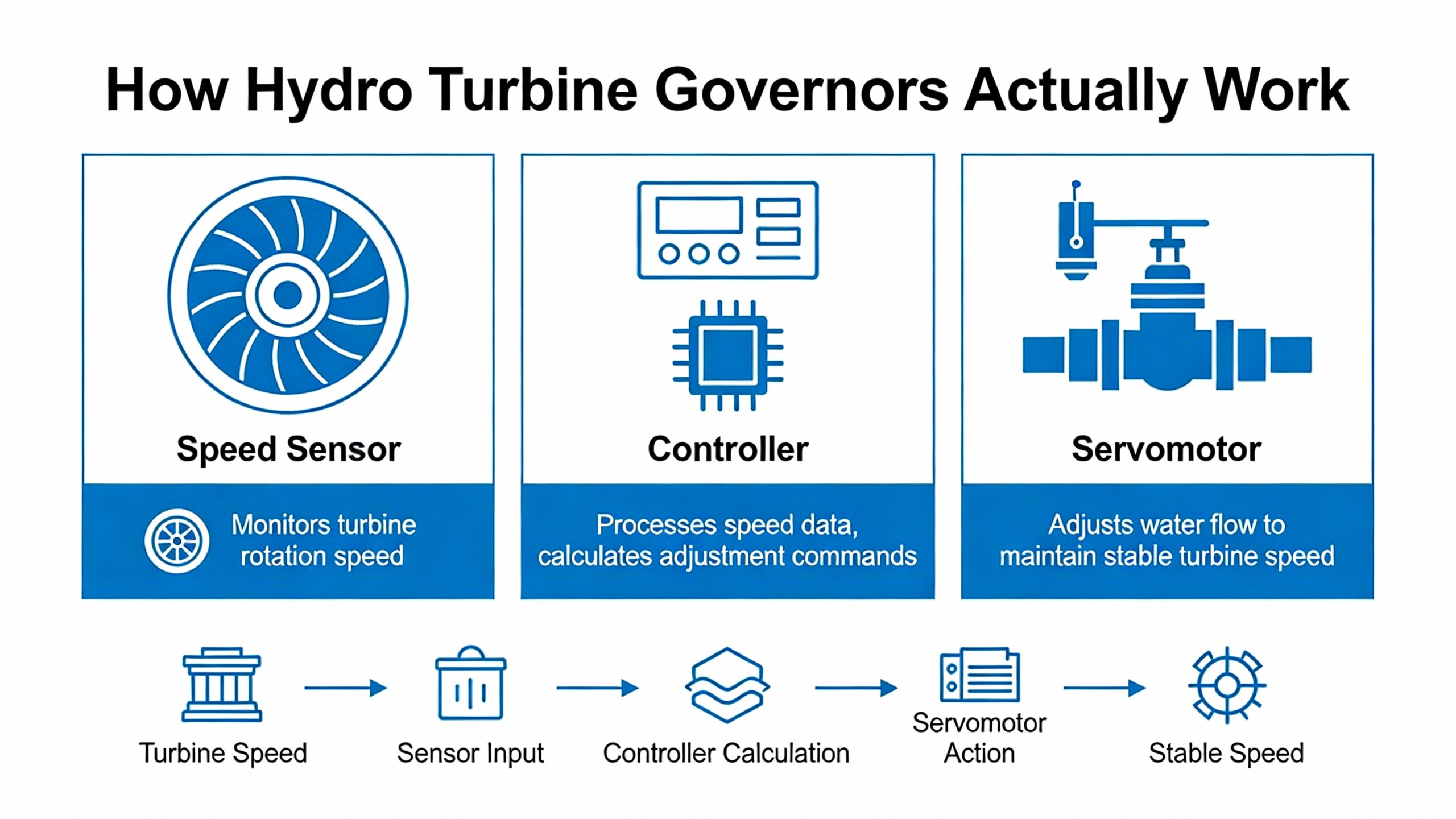 | Sensing and feedback | Turbine speed, grid frequency, generator power, head and tailwater levels, gate position | Accurate, fast feedback is the foundation for stable control and avoiding hunting or slow response |