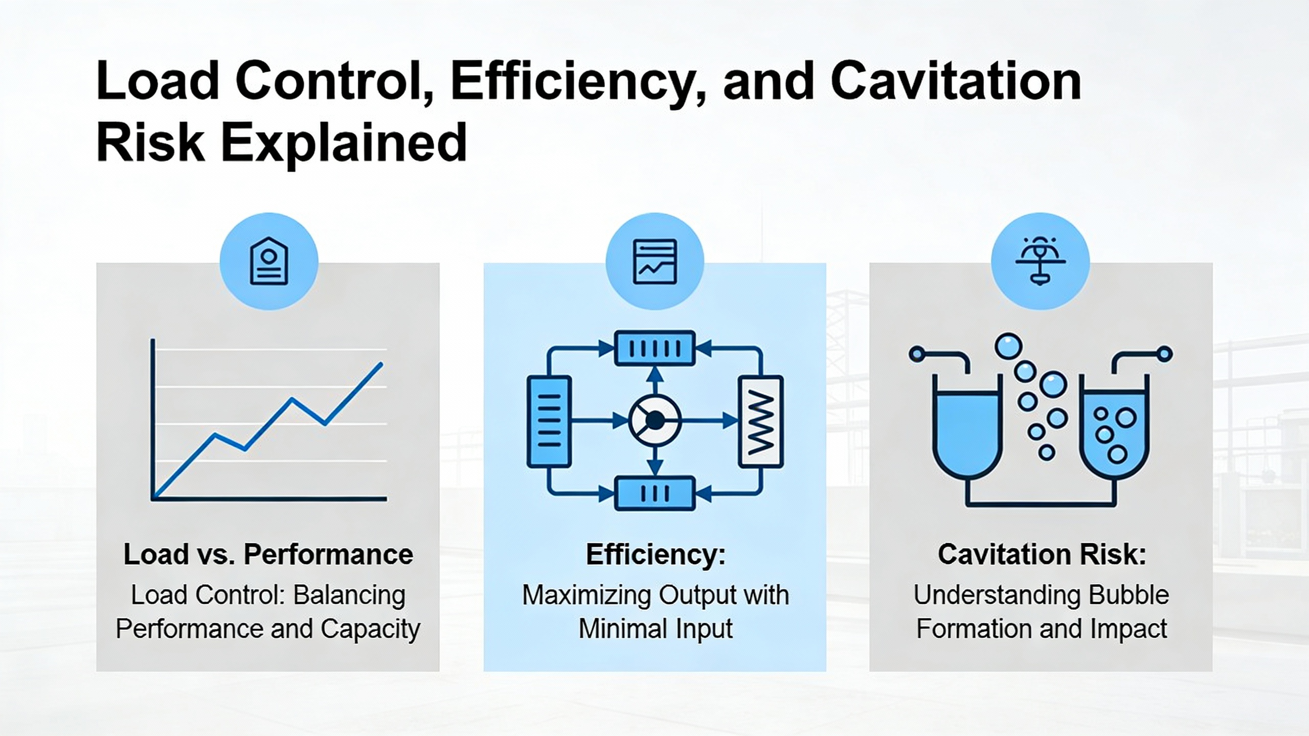A simple example illustrates the point. Consider a plant with three identical units rated at 50 MW each, and a demand of 75 MW. If all three units share the load equally, each runs at 25 MW, or 50% of rating, which is below the rough 60% threshold associated with cavitation risk. If instead the plant control system assigns the 75 MW to just two units, each runs at 37.5 MW, or 75% of rating, closer to the 85鈥95% best鈥慹fficiency band and above the cavitation鈥憆isk zone for extended operation. The governor and Automatic Load Control (ALC) must work together to implement this type of optimal unit commitment and loading in real time.