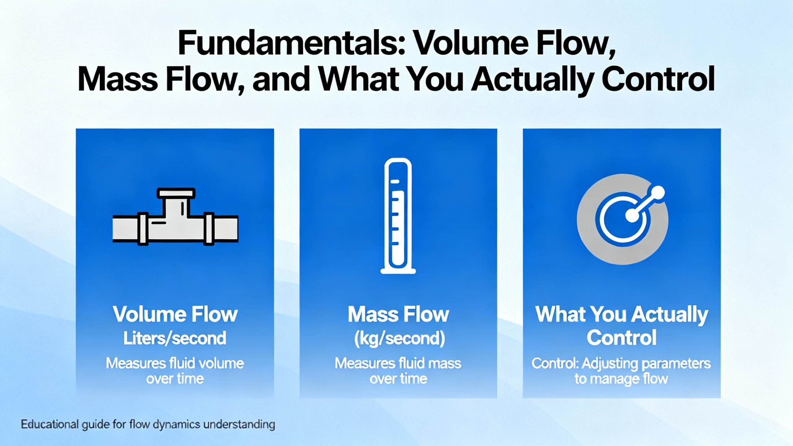 Before picking a meter type, it helps to be clear on what quantity you actually care about. Technical primers on mass flow technology and flow meter selection emphasize a few core concepts.